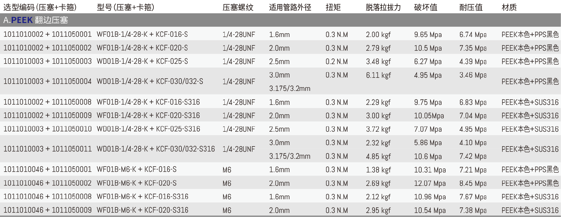 ◆ 螺纹规格:A. 1/4-28UNF(螺距:0.907mm)、M6(螺距:1mm)、
