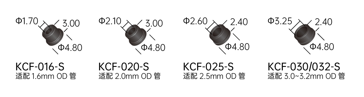 ◆ 可使用外径1.6/2.0/2.5/3.0/3.2mm五种尺寸的硬管,安装快速简易