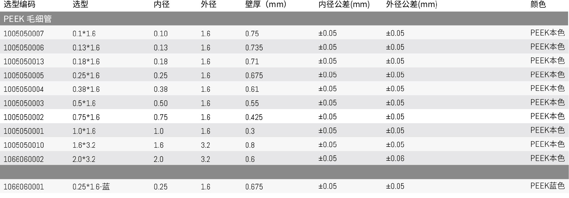 3.PEEK与大部分溶剂都不会起化学反应,可用于替换大多数液体分析系统中的不锈钢管