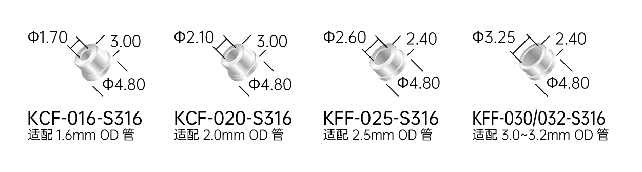 ◆ 可使用外径1.6/2.0/2.5/3.0/3.2mm五种尺寸的硬管,安装快速简易